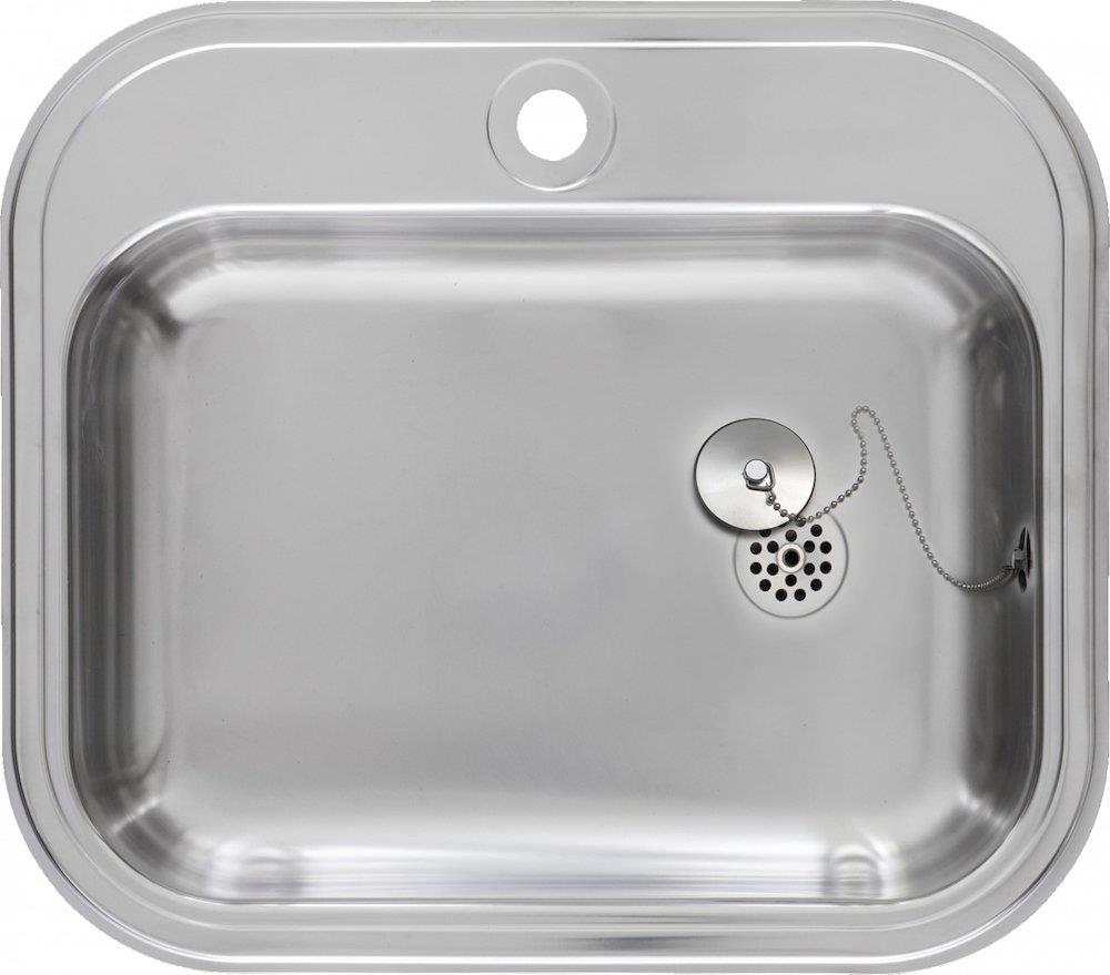 Juvel Barents BK480B1 køkkenvask i rustfrit stål til nedfældning, med hanehul, prop og overløb. Udvendige mål: 550 x 485 mm. Kummemål: 480 x 340 x 145 mm. Passer til et 600 mm skab.