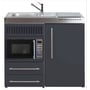 Dette minikøkken fra Intra Juvel, model Trend Premiumline, er en ideel løsning til mindre rum, hvor funktionalitet og pladsudnyttelse er afgørende. Med en bredde på 1000 mm passer det perfekt ind i mange forskellige miljøer, lige fra kontorer og studielejligheder til gæsteværelser.