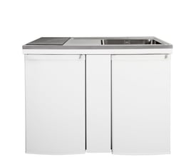 Premiumline minikøkken med lakeret stålkabinet, skumisolering og skuffer med soft luk.