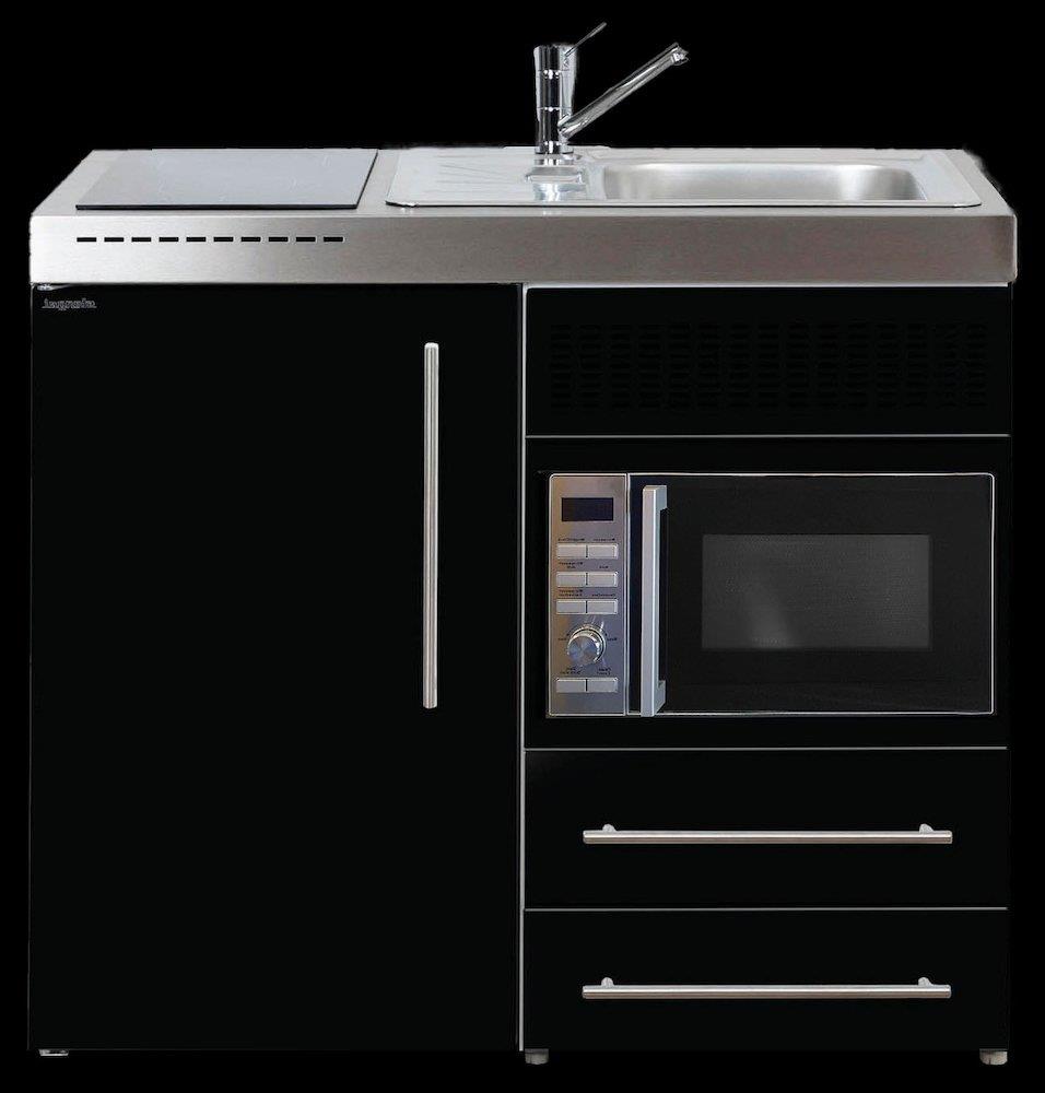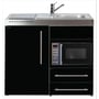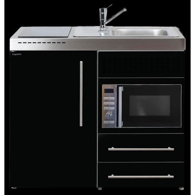 Kompakt minikøkken med enkeltkumme, mikrobølgeovn og keramisk kogeplade. Leveres med prop med kæde og vandlås.