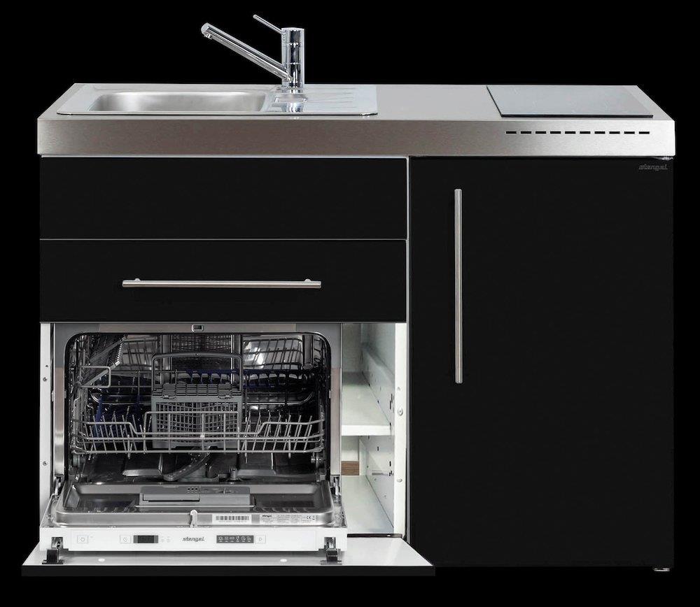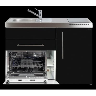 Minikøkken Trend premiumline, 1200/890/60, sort, venstre, med opvaskemaskine og keramisk plade