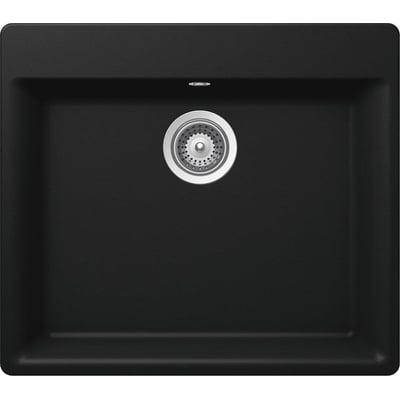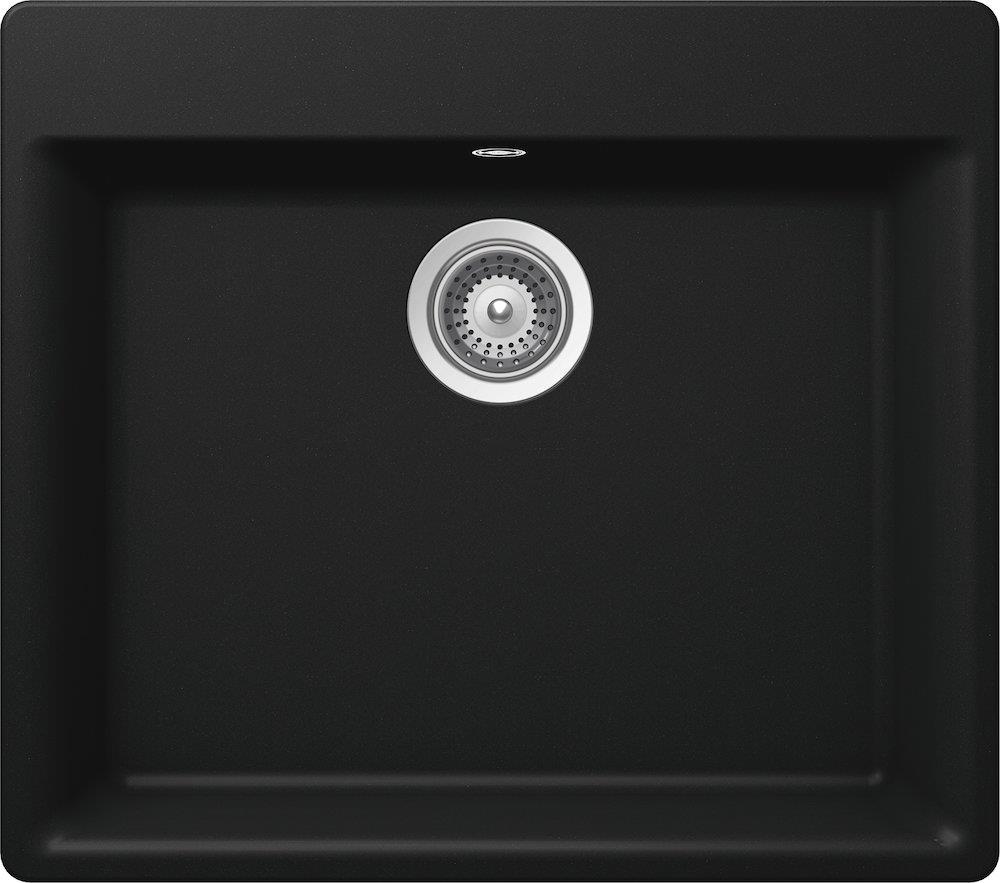 Mono N-100L køkkenvask i sort Cristadur granit til nedfældning. Leveres med basket strainer og har forborede hanehuller til valgfri placering af armatur.