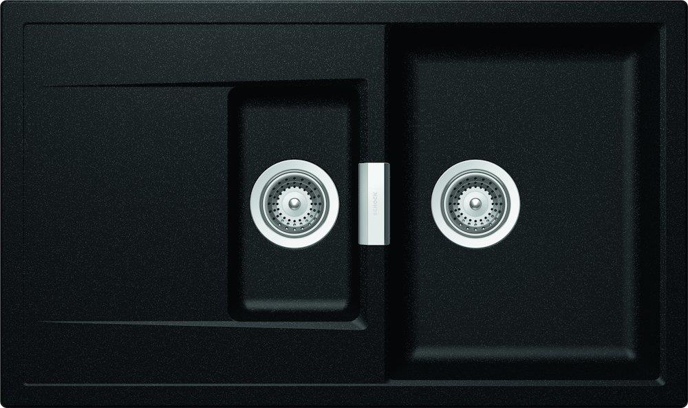 Intra Juvel Mono D-150 køkkenvask i magma granit, designet til nedfældning. Leveres med kurveventil og strainer.