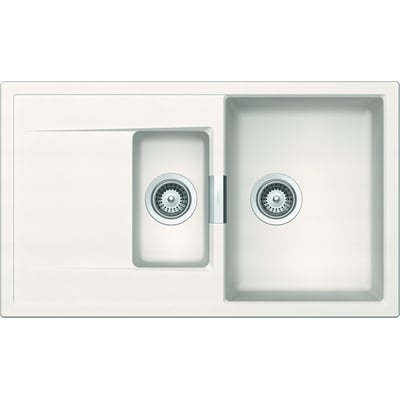 Stilfuld og holdbar køkkenvask i granitkomposit med to kummer og afløbsbakke. Perfekt til nedfældning.