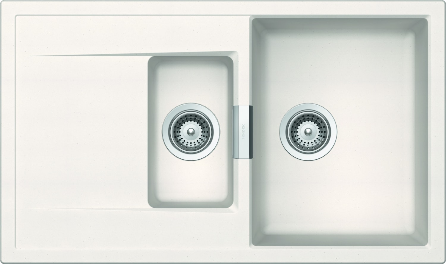 Med to separate kummer og en praktisk afløbsbakke er vasken ideel til et travlt køkken. Den store kumme måler 339,5x440x197 mm, mens den mindre kumme måler 165x294x120 mm. Vasken er uden hanehul og passer til et 600 mm standardskab.