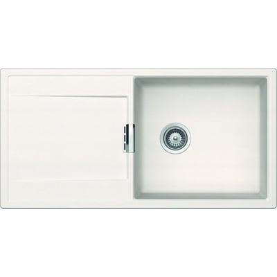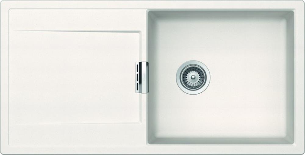 Intra Juvel Mono N-100L Polaris granitvask i hvid med manuel kurveventil og strainer. Designet til nedfældning i et 600 mm skab.