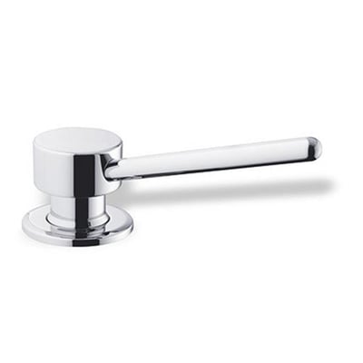 Sæbedispenser i forkromet messing, designet til IntraGranite vaske. Kræver et hul på 35 mm i diameter og har en beholder på 480 ml.