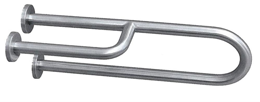 Vægmonteret, fast støttehåndtag i børstet rustfrit stål (AISI 304) til montering ved klapsæde, toilet, bidét eller håndvask. Max. belastning på 150 kg.