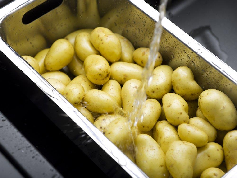 Fremstillet i rustfrit stål, er skyllekurven robust og modstandsdygtig over for korrosion, hvilket garanterer en lang levetid og nem vedligeholdelse. Den er ideel til afdrypning af nyvaskede grøntsager, frugt eller bestik, og hjælper med at holde din køkkenvask organiseret og ryddelig.