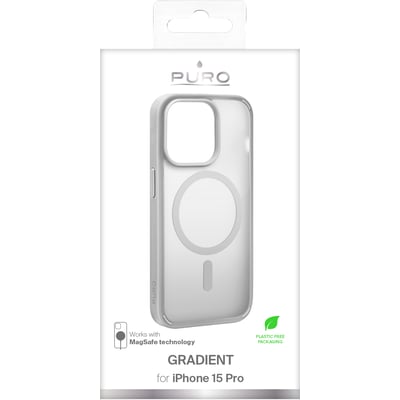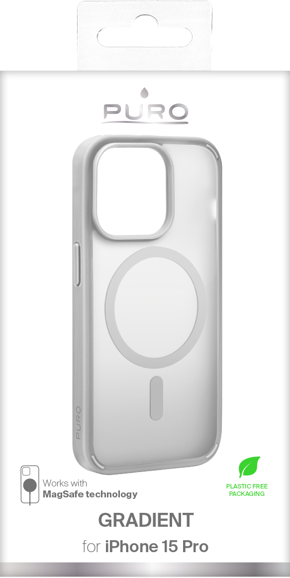 Opgrader din iPhone 15 Pro med det elegante PURO Gradient Cover i sølv. Dette cover kombinerer stilfuldt design med effektiv beskyttelse, og er ideelt til dig, der ønsker at passe godt på din telefon uden at gå på kompromis med æstetikken.
