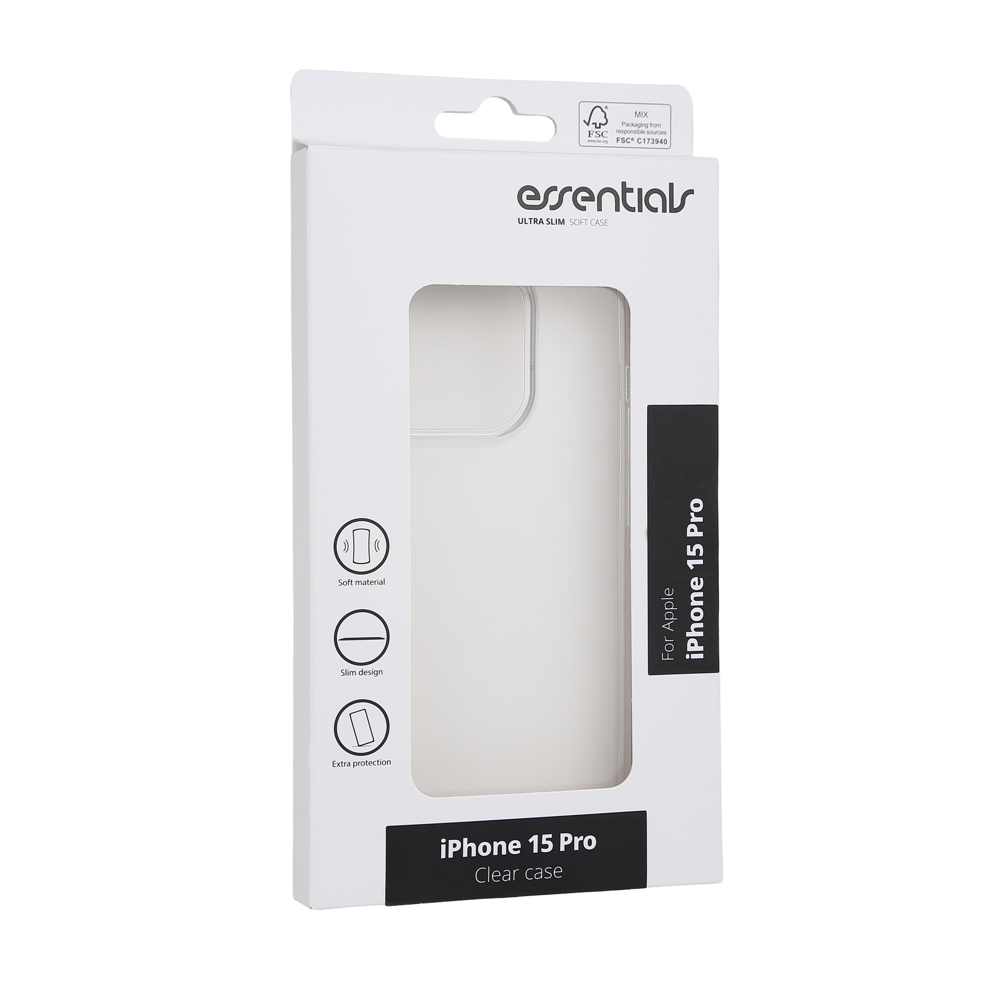Transparent iPhone 15 Pro cover i ultra tyndt design. Beskyt telefonens bagside og sider uden at gå på kompromis med æstetikken. Fremstillet af slidstærkt TPU-plast.
