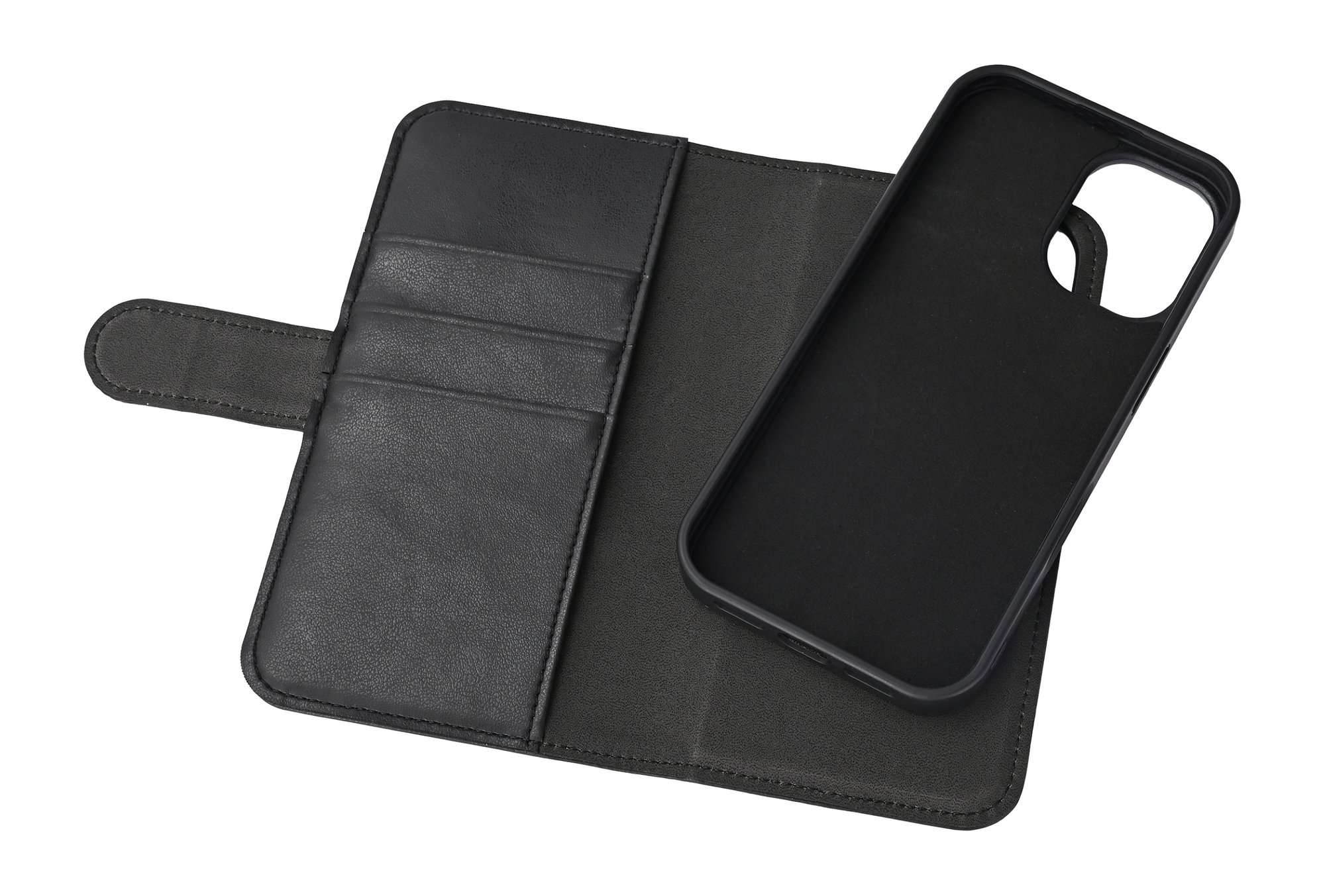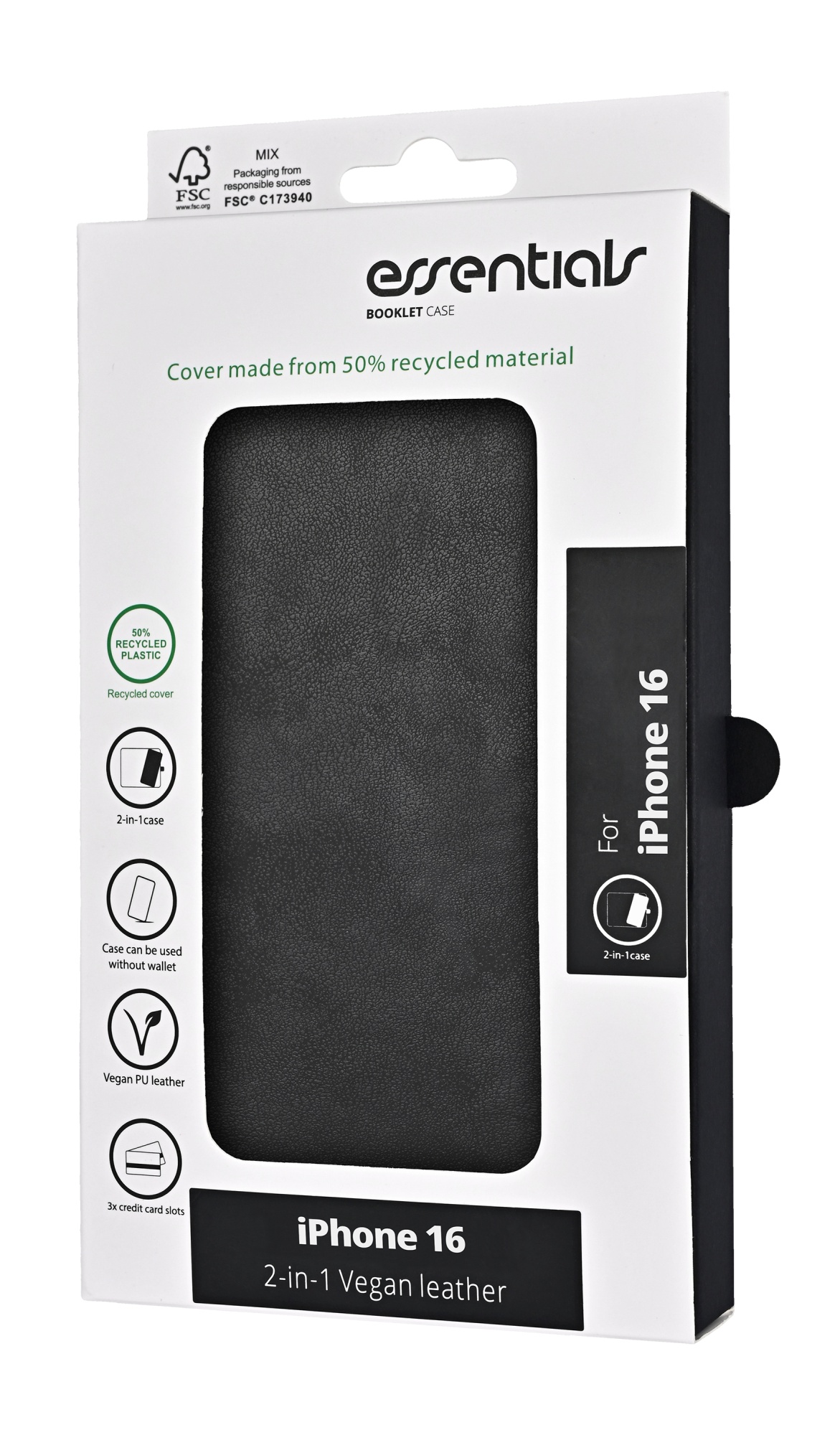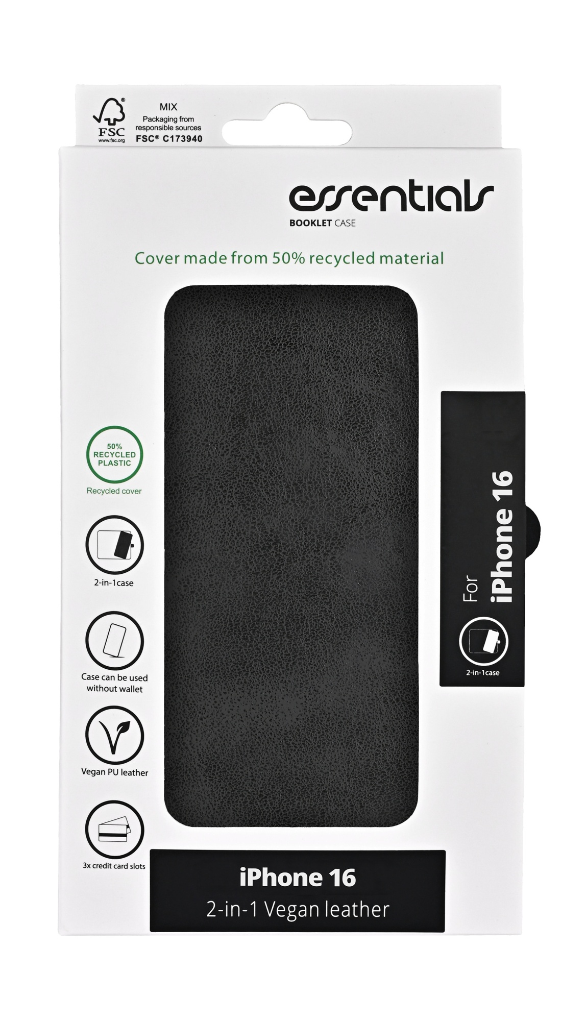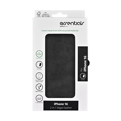 iPhone 16 PU wallet, aftagelig, genanvendt, 3 kort, sort