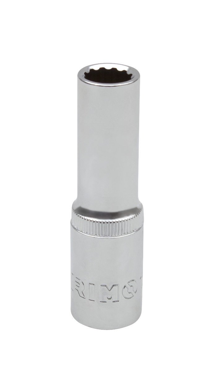 Lang 1/2" topnøgle fra Irimo med 12-kant, 22 mm. Fremstillet i højtlegeret stål med højglanspoleret finish og bølgeformet NPP profil.