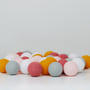 Boldene sidder parvis med 14 cm mellemrum, fordelt på en 140 cm kæde. Tilslutningsledningen er 1500 mm, hvilket giver en total længde på 2900 mm. Lyskæden er ikke dæmpbar og er beregnet til indendørs brug.