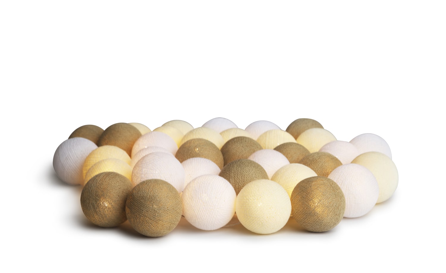 Lyskæde med smukke kugler i sandfarver. Giver et dejligt lys og er en af vores bedst sælgende lyskæder. Med 35 LED lyskilder og klar ledning.
