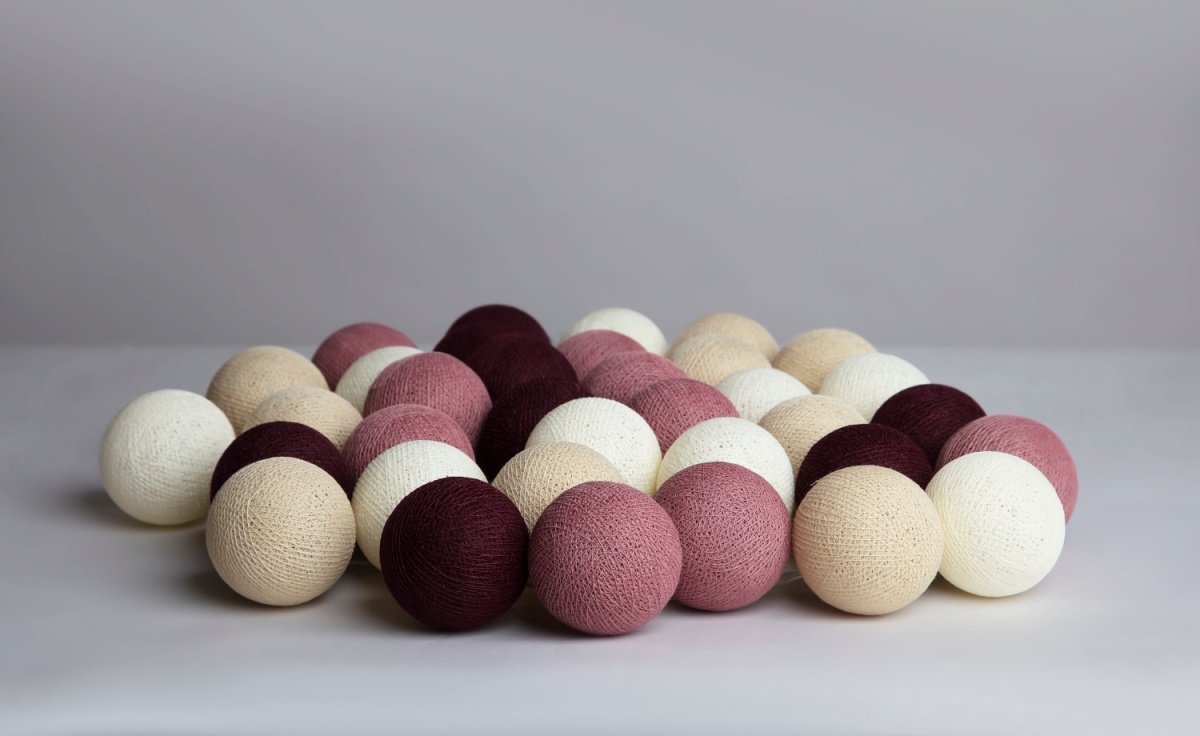 Skab en hyggelig atmosfære med denne smukke lyskæde fra IrisLights. Lyskæden er designet med stofbeklædte kugler i støvede hvide, lyserøde og bordeaux nuancer, der giver et blødt og behageligt lys.