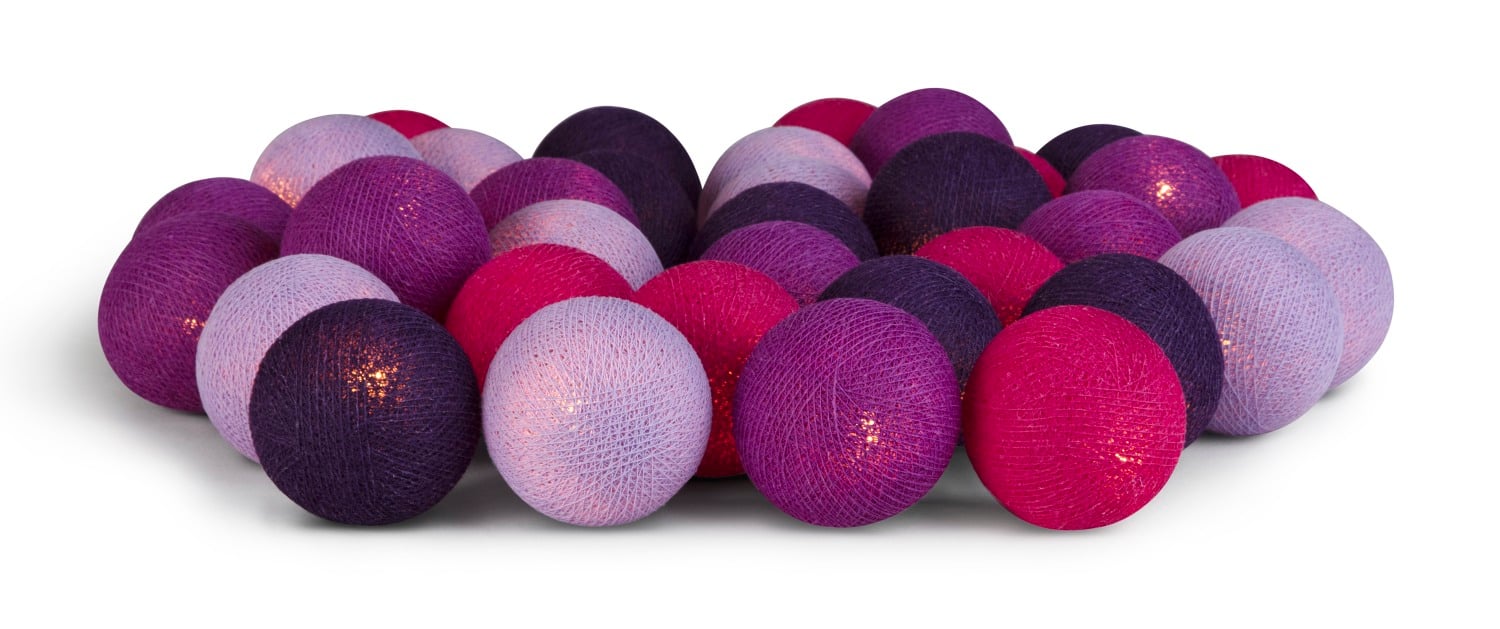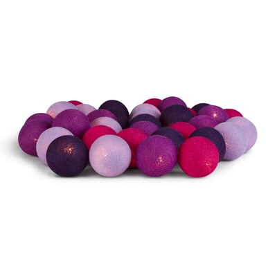 Farverig lyskæde fra IrisLights med LED lys i pink nuancer. Perfekt til indendørs brug. Med 35 lys, klar ledning og afbryder.