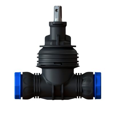 Isiflo Ecoline 40 mm stikledningsventil med skruekoblinger. Til drikkevand (0° til 40°) og vandforsyning (PE- og PVC-rør). Driftstryk: Op til 16 bar.