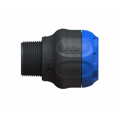 Isiflo Sprint overgang med 'Push-in' kobling til PE-rør. Fremstillet af et højteknologisk kompositmateriale, som er glasfiberarmeret polyamid, der er udviklet for høj styrke og lang levetid. Koblingen er korrosionsfri og godkendt til drikkevand.