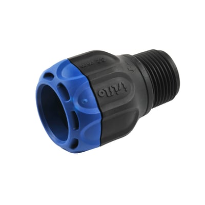 Isiflo Sprint overgang med nippel i kompositmateriale. PN16 trykklasse og VA-godkendt. Nem montering uden værktøj.