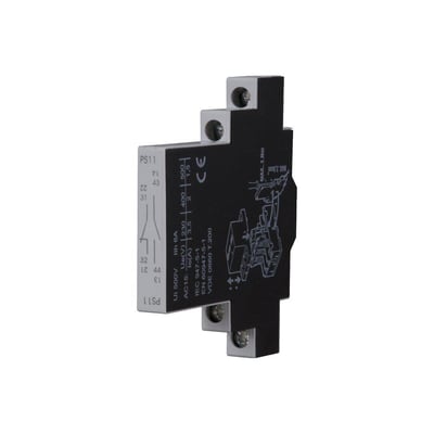 Hjælpeblok fra Iskra til håndbetjent motorværn. Konfiguration: 1NO+1NC. Designet til sidemontage.