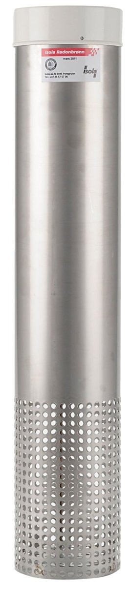 Isola radonbrønd er et specialperformeret rør, der kan benyttes til ventilering af byggegrunden, hvis radonmålingerne viser for høje værdier i byggeriet. Røret er udført i 0,7 mm rustfrit stål med 200 mm performeret felt i den ene ende. I den anden ende er der monteret en pakning af EPDM-gummi for tilslutning af ventilationskanal/rør eller som gastæt låg.