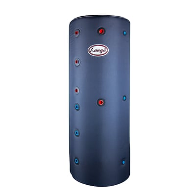 Isoleret akkumuleringstank med sanitetsspiral. Kapacitet: 200 liter. Dimensioner: 650x650x1700 mm. Maks. 95°C og 3 bar.