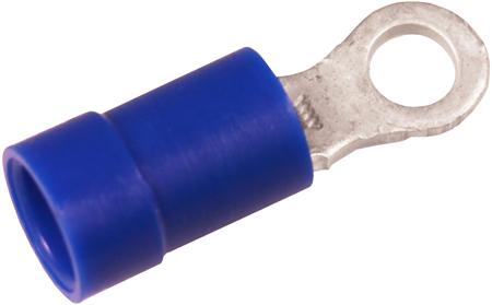 Isoleret ringkabelsko A2585R til 1,5-2,5mm² Cu-leder. Materiale: Cu 99,95%, fortinnet plast PC. Isolering: Blå. Laske: M8. Sælges i poser á 10 stk.