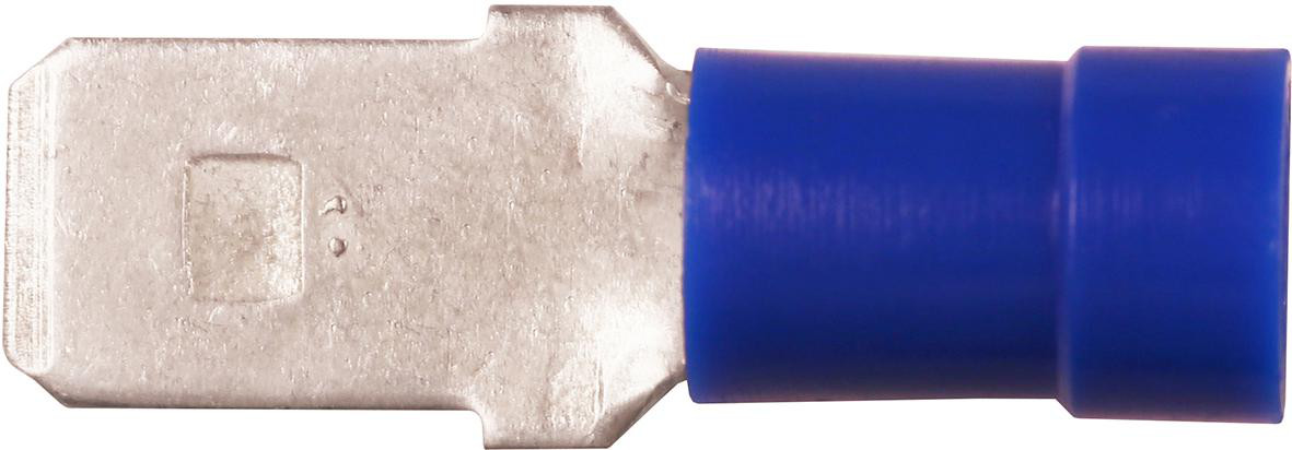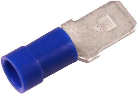 Isoleret spadestik A2507H til 1,5-2,5mm² Cu-leder. Spadestik: 6,3x0,8. Materiale: Messing/Cu, Cu/Sn, plast PC. Isoleringfarve: Blå. Leveres i poser á 10 stk.