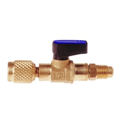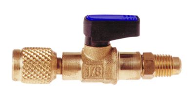 Kugleventil til fyldeslange med gummipakning og ventiludløser.