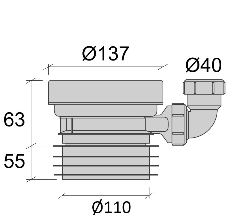 Jafo klosettilslutning med Ø40 mm tilslutning. Ideel til nem og sikker installation af dit toilet.
