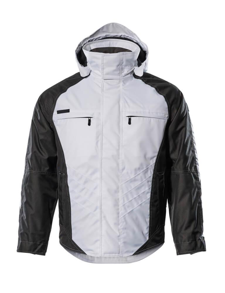 Tofarvet, åndbar, vind- og vandtæt jakke med tapede sømme. Aftagelig hætte og quiltet fleecefor. Optimal bevægelsesfrihed og reflekseffekter.