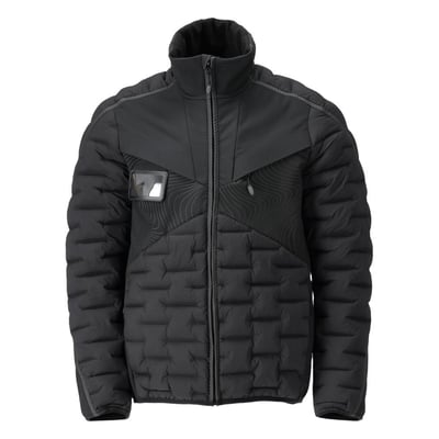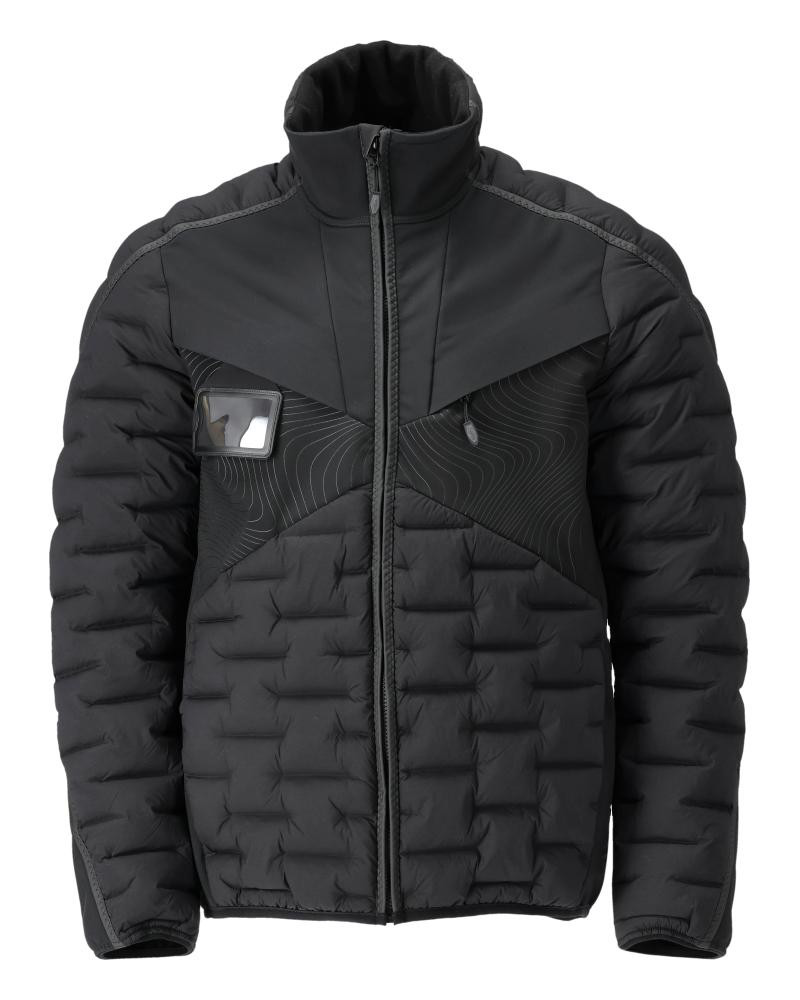Denne Mascot Customized jakke i sort, størrelse 3XL, er designet med fokus på både komfort og funktionalitet. Metervaren er quiltet og fremstillet med stretch, hvilket sikrer en høj grad af bevægelsesfrihed og en behagelig pasform. Jakken er åndbar og vandafvisende, hvilket gør den ideel til brug under forskellige vejrforhold.