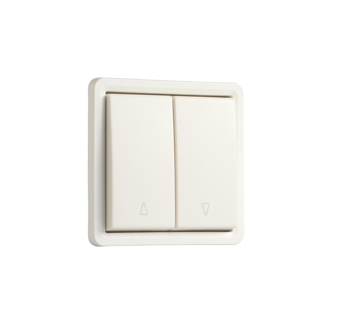 Stænktæt jalousiafbryder fra Hydro til styring af markiser, rulleskodder og motorer. Inklusive tangenter med pilsymboler og plug-in-klemmer. IP55-klassificeret.