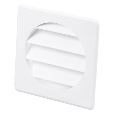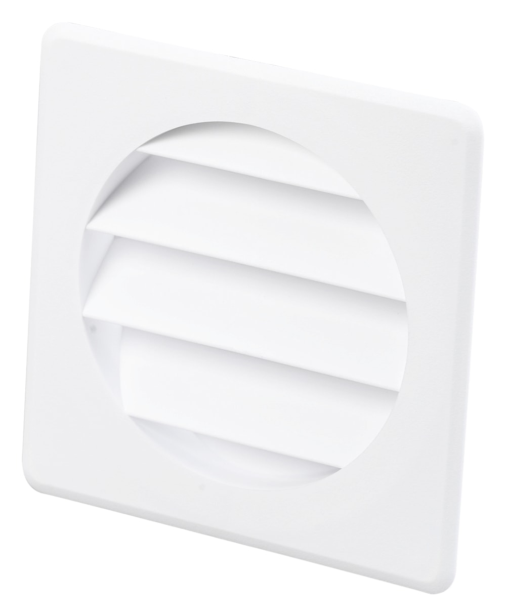 Jalousirist i hvid PP med firkantet karm og rund flange, Ø75 mm. Ideel til murgennemføring type 203.