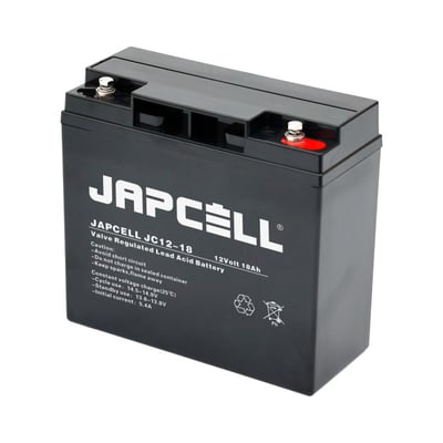 Japcell JC12-18 er et 12V 18Ah AGM blybatteri designet til standby og backup. Høj driftssikkerhed, lav selvafladning og minimal vedligeholdelse.