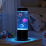 Farverig Jellyfish RGB lampe med 2W effekt, perfekt til børneværelset. Mål: 25 cm høj, Ø9 cm. Fremstillet i ABS plast.