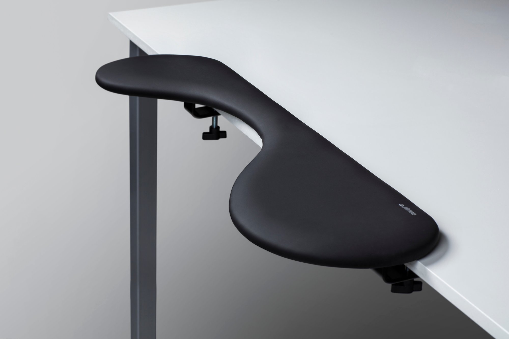 Armstøtten monteres nemt på dit skrivebord og er kompatibel med både lige og vinklede bordplader. Overfladen er beklædt med et smudsafvisende kunstlæder, der gør den nem at rengøre.