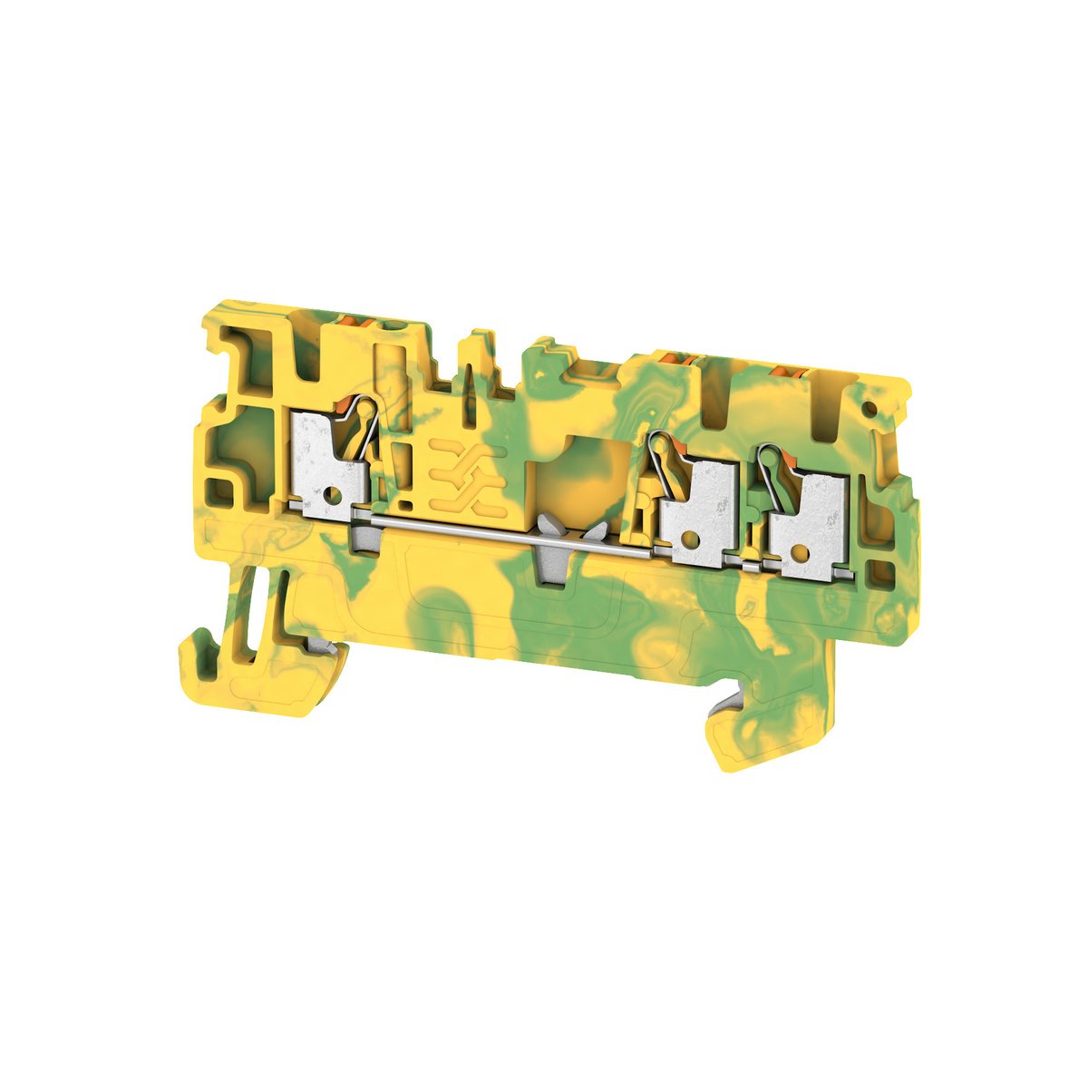 Praktisk gennemgangsklemme til jordforbindelse. Med 3 PUSH IN terminaler og en størrelse på 1.5 mm². Godkendt til 500V.