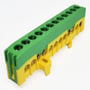 Jordklemme PE12-F2 fra Pollmann Elektrotechnik. 12 x 16 mm², grøn/gul, skrueklemmer, Pozidriv Z2 skruer, mærkestrøm 63 A, montage på DIN-skinne, berøringsbeskyttet, EN 60998, Ui = 690 V.
