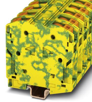 Jordklemme med Power-Turn tilslutning. Til tværsnit fra 10 mm2 til 70 mm2. Grøn/gul farve og montage på NS 35/15 skinne.