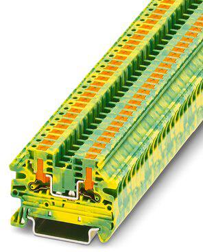 Jordklemme med push-in-tilslutning, 2 tilslutninger, dimensioneringstværsnit: 2,5 mm², tværsnit: 0,14 mm² - 4 mm². Til montering på NS 35/7,5 og NS 35/15.