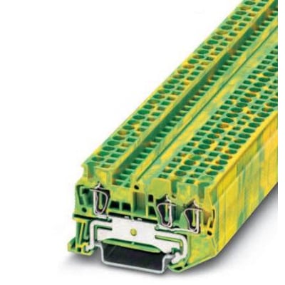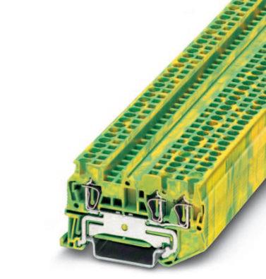 Jordklemme med fjederkrafttilslutning. Velegnet til tværsnit fra 0,08 mm² til 4 mm² og AWG 28-12. Bredde 5,2 mm.