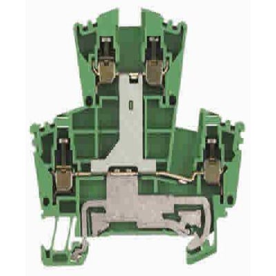 Jordklemme WDK 2.5PE tolags for 2.5mm² med 4 skrueterminaler, 2 på hver lag, gul/grøn Wemid.