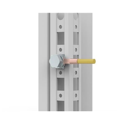Jordtilslutninger til montering af jordstropper og kabler til kabinettets ramme. Pakke med 10 sæt.