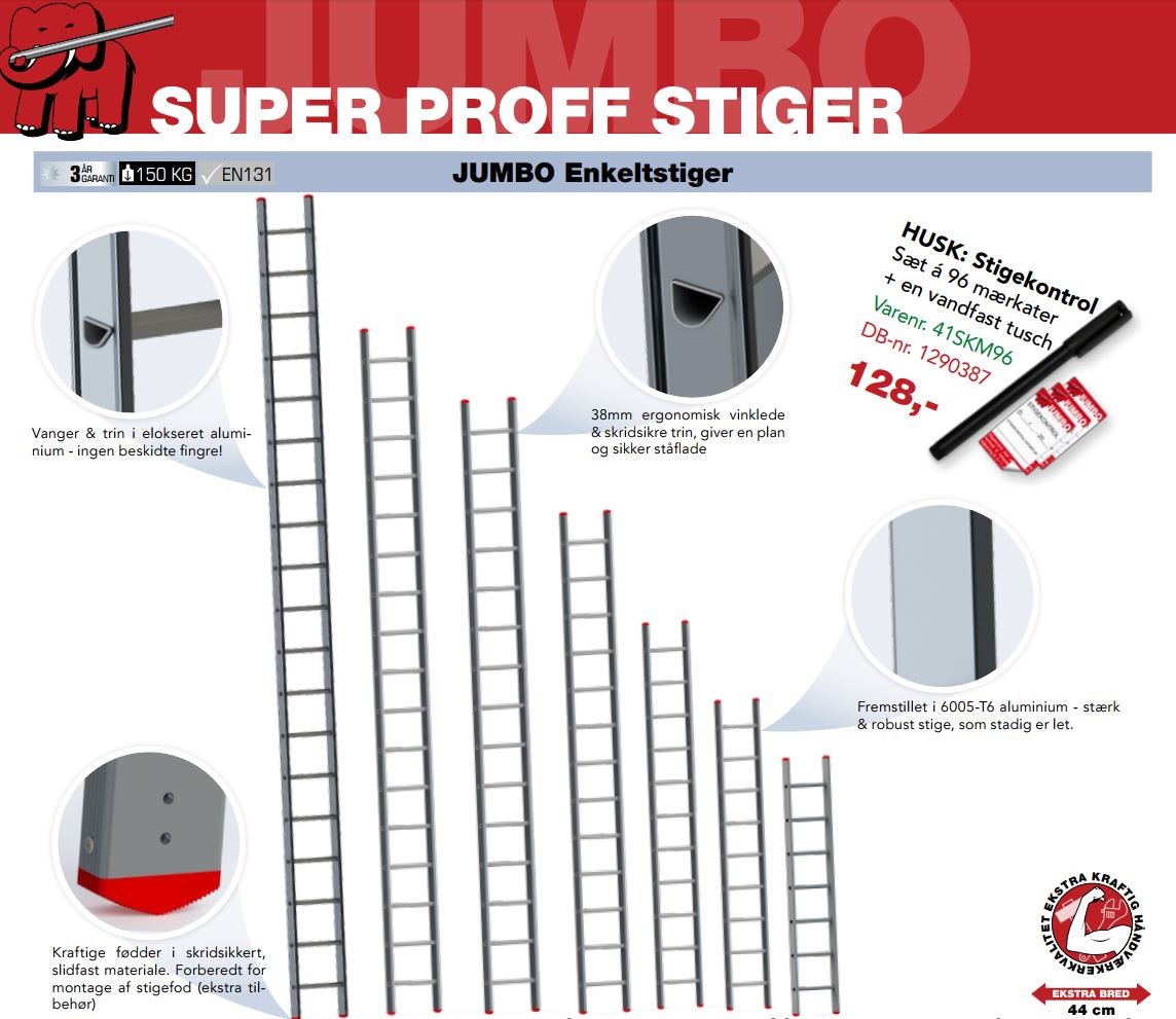 JUMBO enkeltstige Super ProffJUMBO enkeltstige Super Proff, 15 trin, 4,3 meterJUMBO enkeltstige Super Proff, 11 trin, 3,2 meterJUMBO enkeltstige Super Proff, 9 trin, 2,8 meterJUMBO enkeltstige Super Proff, 13 trin, 3,8 meterJUMBO enkeltstige Super Proff, 7 trin, 2,1 meterJUMBO enkeltstige Super Proff, 19 trin, 5,5 meterJUMBO enkeltstige Super Proff, 17 trin, 4,9 meter