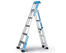 Stigen sættes op ved at trække den ud trin for trin. Med 11 trin og en maksimal arbejdshøjde på 3,20 meter, tilbyder den fleksibilitet til forskellige opgaver.