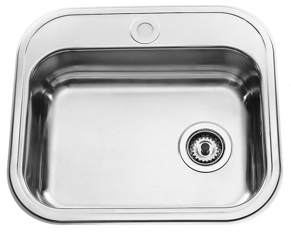 Barents køkkenvask til underlimning med firkantet form, fremstillet i poleret rustfrit stål. Inkluderer overløb og strainer.