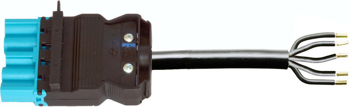 5-polet GST18I5 tilslutningskabel fra Wieland. Halogenfri, blå og med testhul. Længde: 1,5 meter.