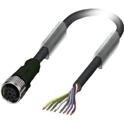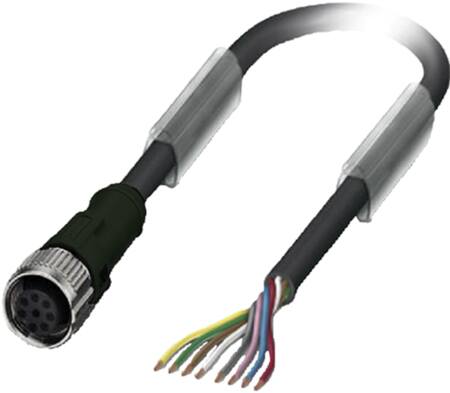 8-PIN kabel med kabelende uden stik. 10 meter lang, til RFID sikkerhedsafbryder 3SE63, på lige sokkel M12, til 2A og 30V.